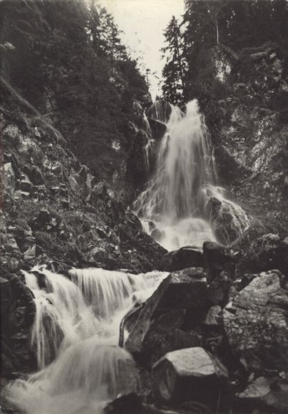 Widok na wodospad w Dolinie Spalonej.