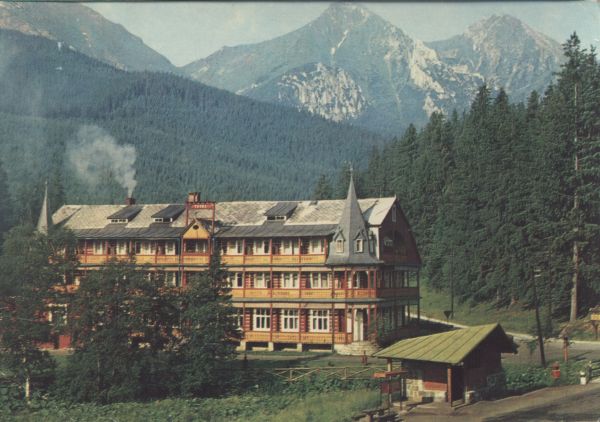 Czechosłowacja - Tatry Wysokie. Zdziar - Dom wypoczynkowy RZZ Tatra. W tle Płaczliwa Skała i Hawrań.