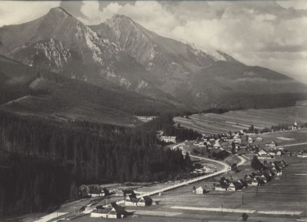 Widok na Zdziar. Na pierwszym planie zabudowania wiejskie, w głębi las. W tle Płaczliwa Skała i Hawrań.