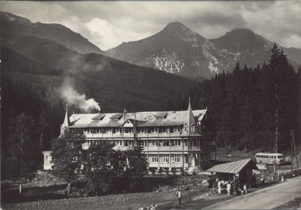 Tatrzański Park Narodowy [Słowacja]. Tatry Bielskie. Dom wypoczynkowy RZZ Tatra w Zdziarze. W tle Płaczliwa Skała (w lewo) i Hawrań (w prawo).