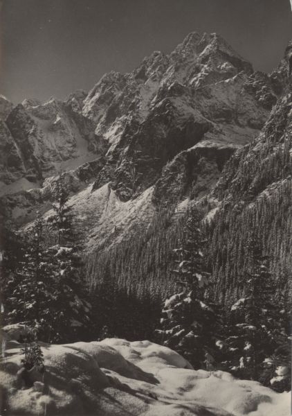 Widok na masyw Ganku z Doliny Białej Wody w scenerii zimowej.