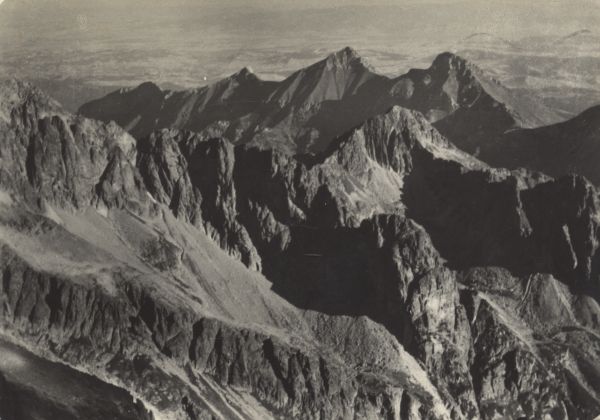 Widok z Łomnicy. Na zdjęciu Kołowy Szczyt, Jagnięcy Szczyt oraz Jastrzębia Turnia. W głębi szczyty Tatr Bielskich.