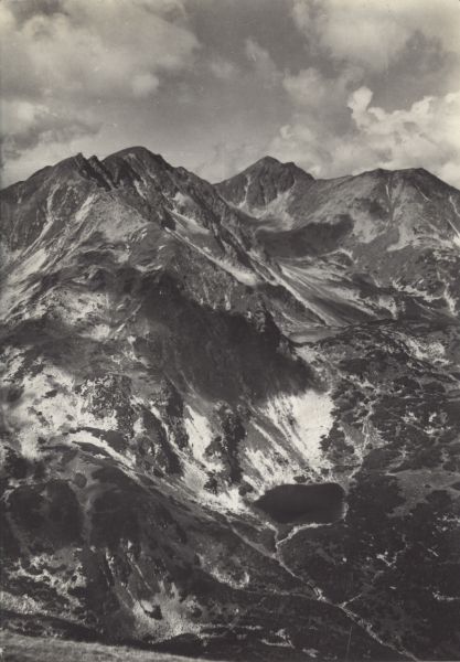 Trzy Kopy i Pachoł widziany z Wołowca. W dole Niżni Staw Rohacki.