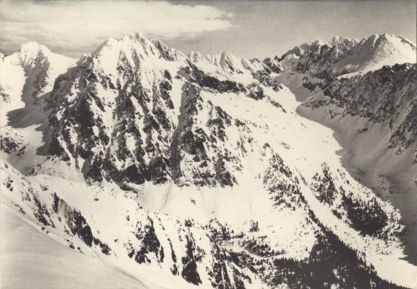 Fragment Doliny Mięguszowieckiej, Dolina Złomisk, Rysy, Wysoka i Kończysta widziane z Grani Baszt zim±.