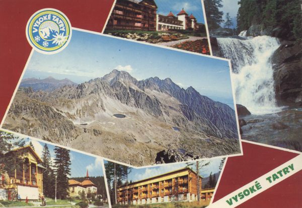 Tatranskę národnę park Vysoké Tatry Novę Smokovec (1000 m), lieèebnę dom Branisko. Studenovodskę vodopád. Poh”ad z Vęchodnej Vysokej (2428 m) ponad Ve”kú Studenú dolinu (Pusté pleso, „adové pleso a Starolesnianske pleso). Starę Smokovec (1010 m). Novę Smokovec, hotel MS 70.