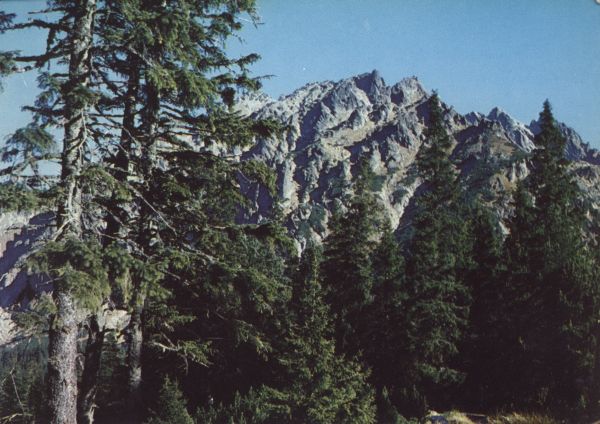VYSOKÉ TATRY - WYSOKIE TATRY - HOHE TATRA - THE HIGH TATRAS Lesné zátišie v Mengusovskej doline, v pozadí časť Popradského hrebeňa