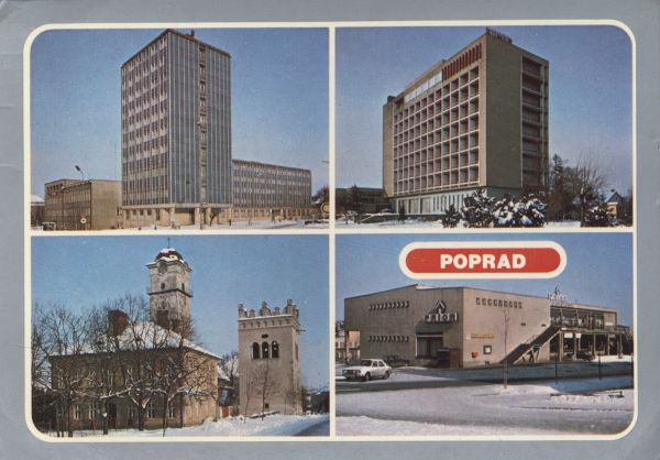 Poprad. Restauracja i kawiarnia Dru¾ba. Hotel Gerlach. Renesansowa dzwonnica. Dom Towarowy Prior.