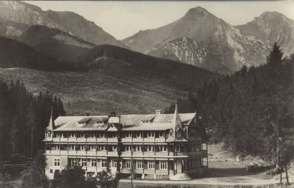 Belanské Tatry - Ždiar ROH - Zdravá generácia Zotavovňa "Tatra" v pozadí Ždiarske Vidly 2148 m n. m. Havran 2154 m n. m.