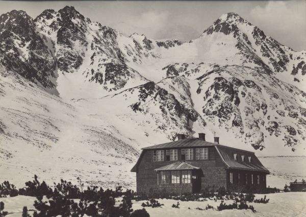 VYSOKÉ TATRY - Keľmarská chata (1614 m). (©tátne telovýchovné stredisko), Baranie rohy (2536 m), Kolový (2425 m) a Jahňací ątít (2231 m)