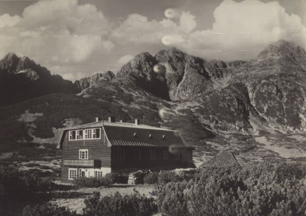Tatry Wysokie - Schronisko Kieżmarskie (Państwowe Centrum Wychowania Fizycznego). W tle Durny Szczyt, Kozi Szczyt i Jagnięcy Szczyt.
