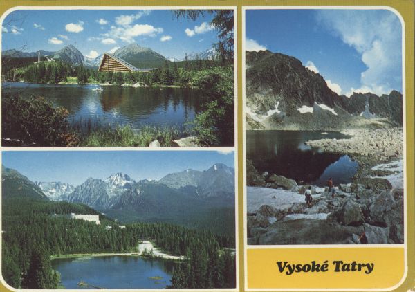 VYSOKÉ TATRY - WYSOKIE TATRY - HOHE TATRA - THE HIGH TATRAS Štrbské pleso (1355 m), v pozadí hotel Patria. Sanatórium Helios na Štrbskom Plese. Mlynická dolina - Capie pleso (2072 m)