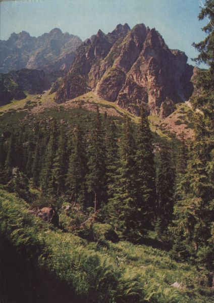 Tatry Wysokie. Dolina Białej Wody na północnej stronie Tatr Wysokich jest jedną z najpiękniejszych tatrzańskich dolin. Miejscem wyjścia do niej jest Łysa Polana przy Tatrzańskiej Jaworzynie. Tytuł również w języku: niem., ang., fr.