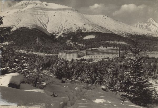 Nowy Smokowiec zim±. Widok na sanatorium. W tle Sławkowski Szczyt, z prawej Łomnica.