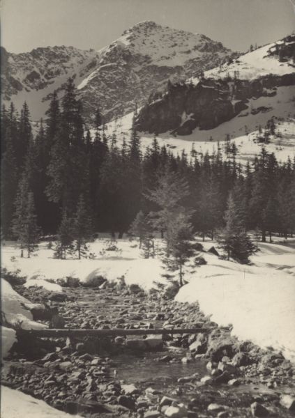 Rohacz Płaczliwy nad Doliną Smutną zimą. W dole płynie Rohacki Potok.