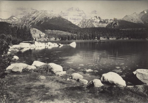 VYSOKÉ TATRY Pohµad od ©trbského plesa (1350 m) na sever. Vµavo: ©trbský ątít (2385 m), hrebeň Báąt s Patriou (2203 m), Vysoká (2560 m), Končistá (2535 m)