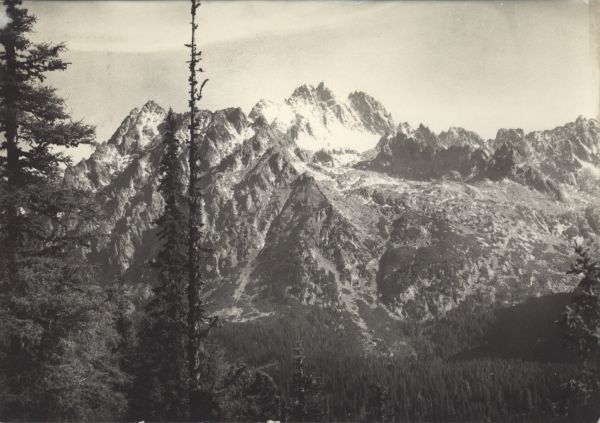 Widok na grupę Wysokiej z Magistrali Tatrzańskiej. Od lewej: Kopa Popradzka, Wysoka, Ganek, Rumanowy Szczyt, Żłobisty Szczyt.