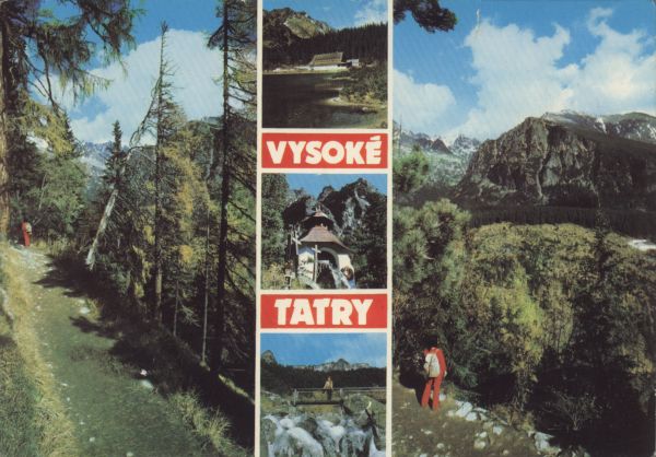 Tatranský národný park. Vysoké Tatry. Cesta na Popradské pleso. Horský hotel kpt. Morávku (1500 m) pri Popradskom plese (1494 m). Symbolický cintorín. Mengusovská dolina, cestou na Rysy (mostík cez Žabí potok). Pohľad z magistrály (z chodnika na Popradské pleso) do Zlomiskovej doliny a na Ostrvu (1984 m)