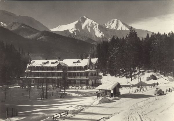 Tatry Bielskie. Dom wypoczynkowy RZZ Tatra w Zdziarze. W tle Płaczliwa Skała (z lewej) i Hawrań (z prawej).