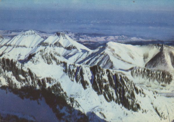 Tatry Wysokie. Tatry Bielskie z Hawraniem, Płaczliwą Skałą i Szalonym Wierchem z Łomnicy. Tytuł również w języku: niem., ang., fr.