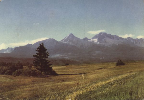 Tatry Wysokie. Od lewej: Tępa, Kończysta, Batyżowiecki Szczyt i Szczyt Stalina. Tytuł również w języku: ros., ang., niem.