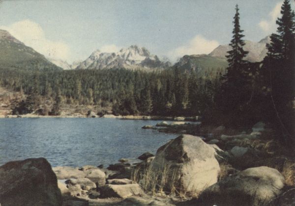 Tatrzański Park Narodowy [Słowacja]. Widok znad Szczyrbskiego Jeziora na Wysok±. Z lewej Kopa Popradzka, z prawej Osterwa. Tytuł również w jêzyku: ros., ang., niem.