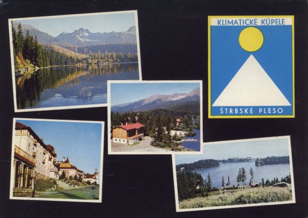 VYSOKÉ TATRY. ©trbské Pleso (1346 m), pohµad na Vysokú. ©trbské Pleso, v pozadí liečebné domy "Kriváň" a "Hviezdoslav". Liečebný dom Kriváň". Detský liečebný dom "Solisko".