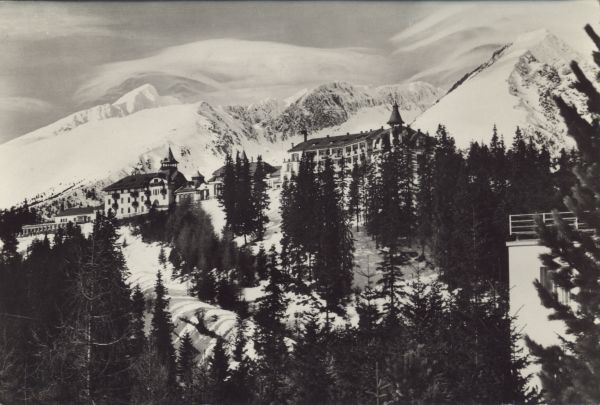 Sanatoria Hviezdoslav i Krywań w Szczyrbskim Jeziorze zim±. W tle Krywań, Siodełkowa Kopa i Solisko.