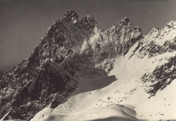 Tatry Wysokie - Dolina Małej Zimnej Wody. Ciemniasta Turnia, Pośrednia Grań, Mała Pośrednia Grań, Żółta Ściana, Drobna Turnia i Sokola Turnia.