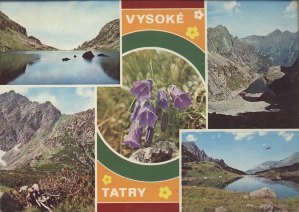 Dzwonek alpejski (Campanula alpina Jacq.). Pomiędzy zdjęciami napis: VYSOKÉ TATRY.