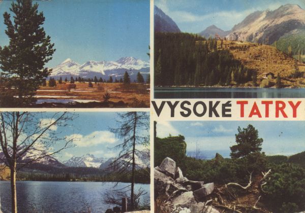 Fragment Magistrali Tatrzańskiej. Pomiędzy zdjęciami napis: VYSOKÉ TATRY.