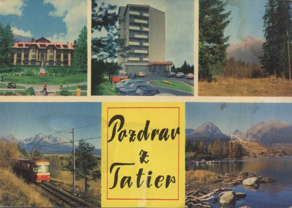 VYSOKÉ TATRY 1. Starę Smokovec - hotel Grand 2. Starę Smokovec - hotel 3. Kriváò (2496 m) 4. Elektrièka v pozadí źdiarske Vidly (2148 m) 5. ©trbské pleso (1320 m)