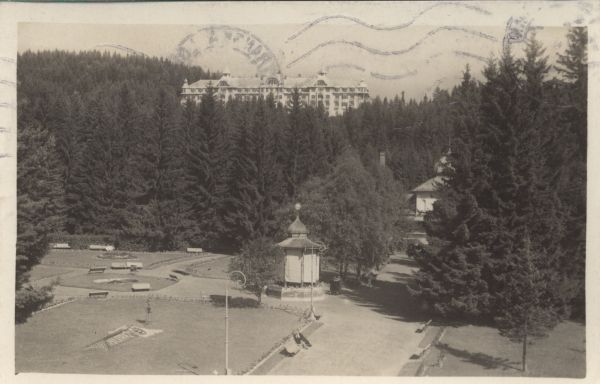 Tatrzańska Łomnica. Łazienki w parku zdrojowym, w tle Grand Hotel Praga.