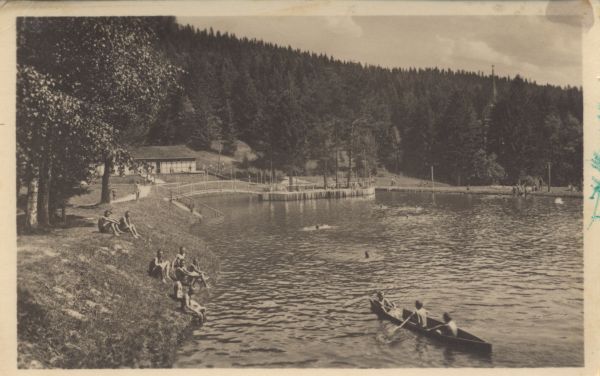 Tatrzańska Łomnica. Kąpielisko Jeziorko. Widoczni wypoczywający ludzie.