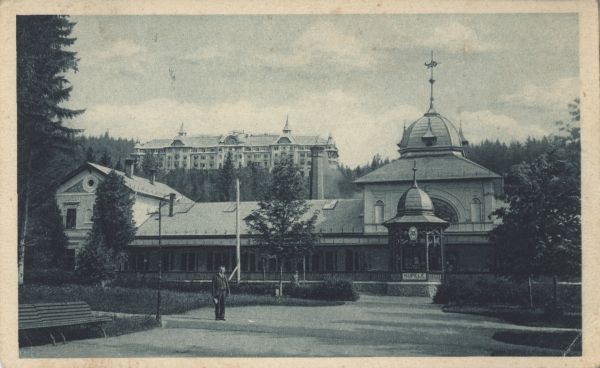 Tatry Wysokie. Tatrzańska Łomnica. Łazienki, w tle Grand Hotel Praga.