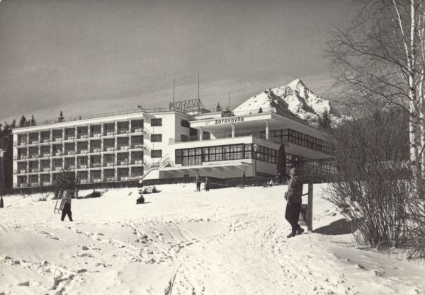 Tatry Wysokie - Tatrzańska Łomnica. Dom wypoczynkowy RZZ Morawa. W tle Sławkowski Szczyt.