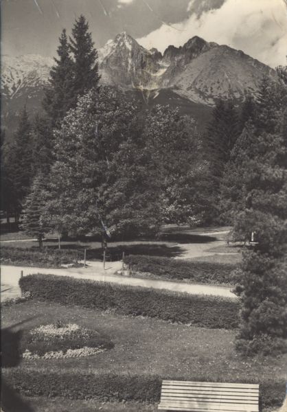 TATRANSKĘ NÁRODNĘ PARK Tatranská Lomnica Park, v pozadí Lomnickę (2634 m) a KeŸmarskę čtít (2556 m)