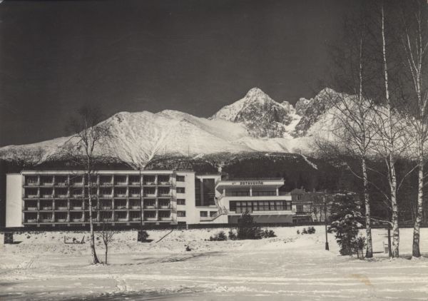 VYSOKÉ TATRY - Tatranská Lomnica Zotavovňa ROH Morava. V pozadí skupina Lomnického ątítu (2634 m)
