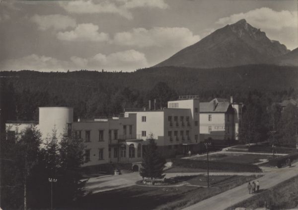 VYSOKÉ TATRY - Tatranská Lomnica Zotavovňa ROH Javorina V pozadí Slavkovský štít (2453 m)