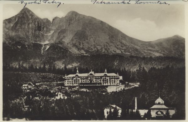 Grand Hotel Praha w Tatrzańskiej Łomnicy. W tle Łomnica i Kieżmarski Szczyt.