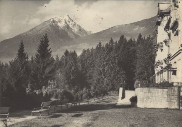Tatrzańska Łomnica. Widok na Sławkowski Szczyt sprzed Grand Hotelu Praga.