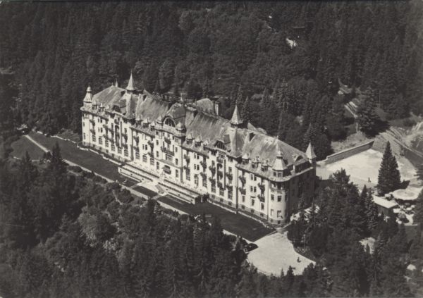 Widok z samolotu na Grand Hotel Praga w Tatrzańskiej Łomnicy i jego otoczenie.