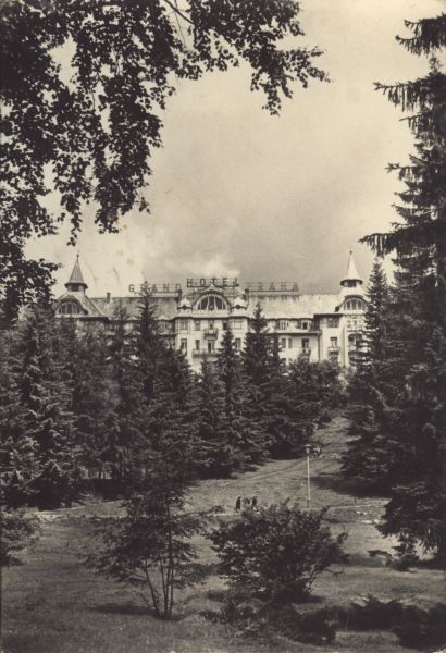 Widok z parku zdrojowego na Grand Hotel Praga w Tatrzańskiej Łomnicy.