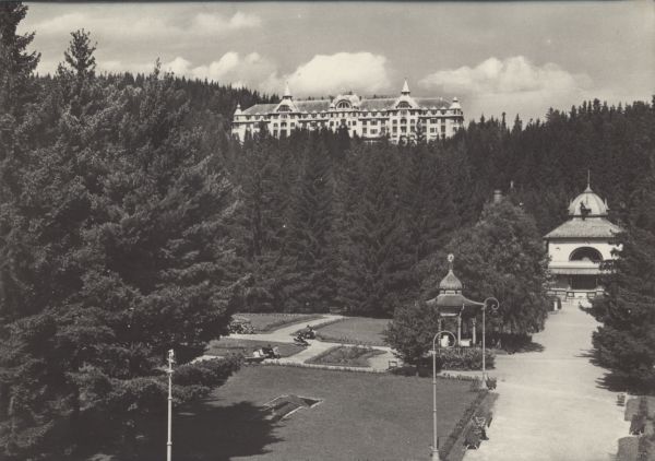 Grand Hotel Praga w Tatrzańskiej Łomnicy. Na pierwszym planie park.