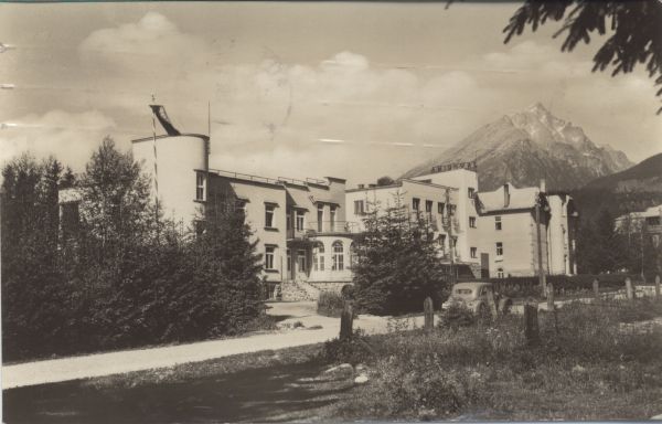 Vysoké Tatry - Tatr. Lomnica 900 m n.m. ROH - Zdravá generácia - Zotavovne Javorina a Glória. V pozadí Slavkovský štít 2453 m n.m.