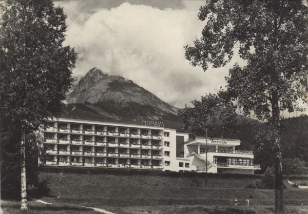 Tatry Wysokie - Tatrzańska Łomnica. Dom wypoczynkowy RZZ Morawa. W tle Kieżmarski Szczyt.