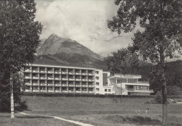Tatry Wysokie - Tatrzańska Łomnica. Dom wypoczynkowy RZZ Morawa. W tle Kieżmarski Szczyt.
