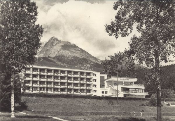 VYSOKÉ TATRY - Tatranská Lomnica Zotavovňa ROH Morava. V pozadí Kežmarský štít (2556 m)