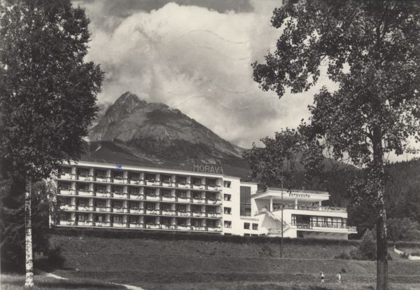 Tatry Wysokie - Tatrzańska Łomnica. Dom wypoczynkowy RZZ Morawa. W tle Kieżmarski Szczyt.
