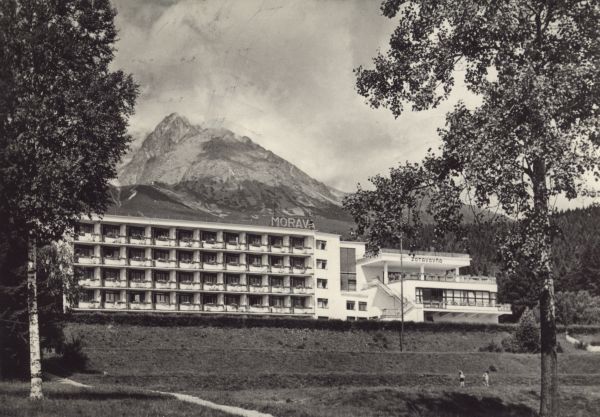 VYSOKÉ TATRY - Tatranská Lomnica Zotavovňa ROH Morava. V pozadí Kežmarský štít (2556 m)