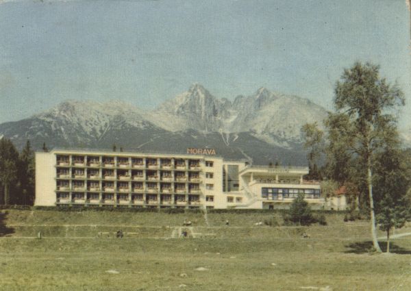 VYSOKÉ TATRY - Tatranská Lomnica Zotavovňa ROH Morava. V pozadí Lomnický ątít (2634 m) a Keľmarský ątít (2558 m)